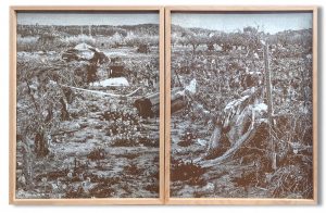 The TEMEZ installation features two of these images: a diptych that shows the traces of the catastrophe in the landscape,