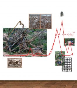 Another element of the work is a composition made of with objects found at a site in the devastated areas. The colour